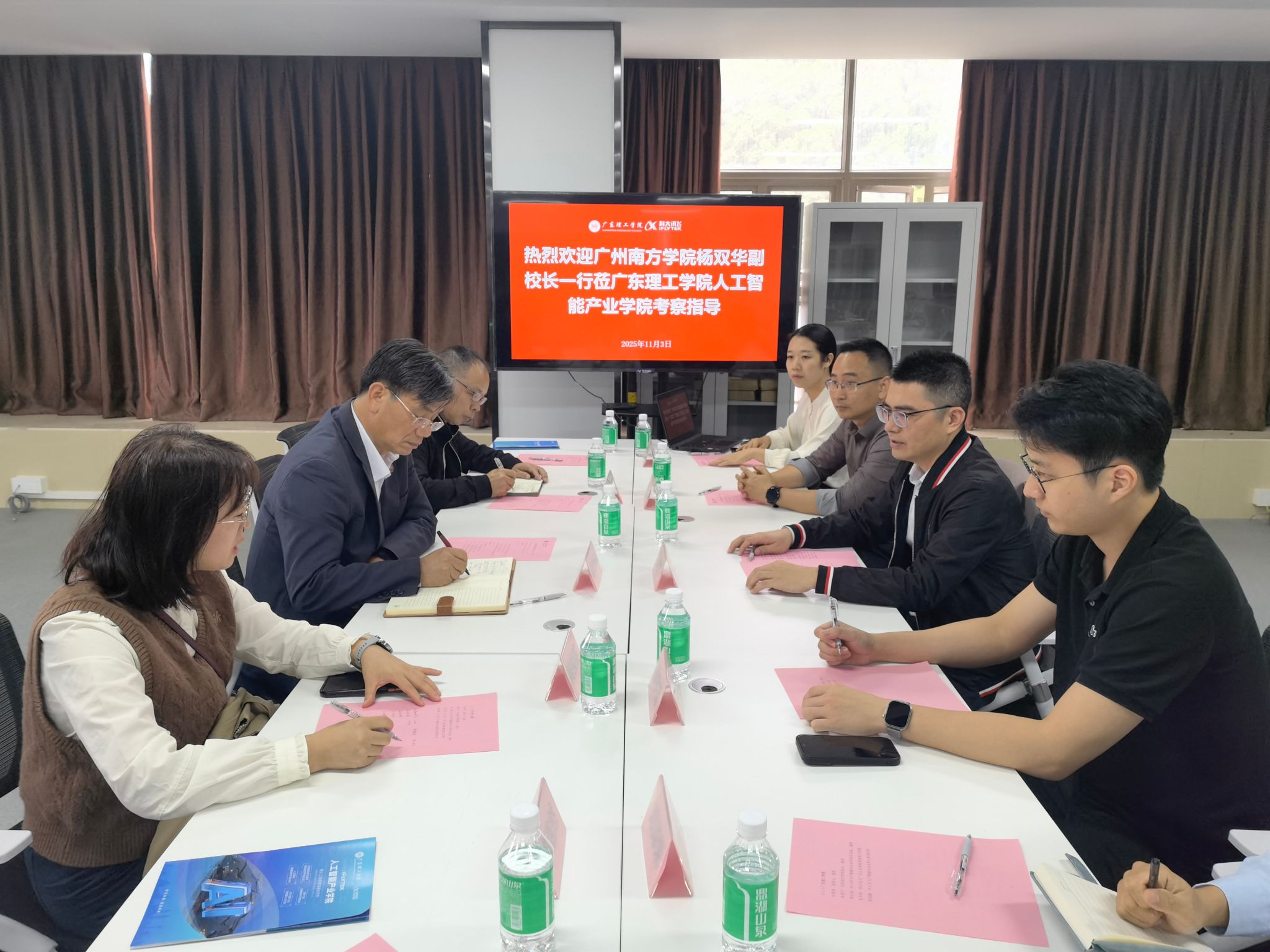 2025年11月3日,我校副校长、欧洲科学与艺术院院士杨双华教授率队赴广东理工学院科大讯飞人工智能产业学院开展参观交流活动。我院副院长苑俊英教授、副院长陈深进副教授及邓浩然老师一同参加此次交流活动。广东理工学院副校长刘香萍教授对杨双华副校长一行的到访表示热烈欢迎。信息技术学院院长林显宁教授、科大讯飞人工智能产业学院院长莫小泉教授等出席座谈会。