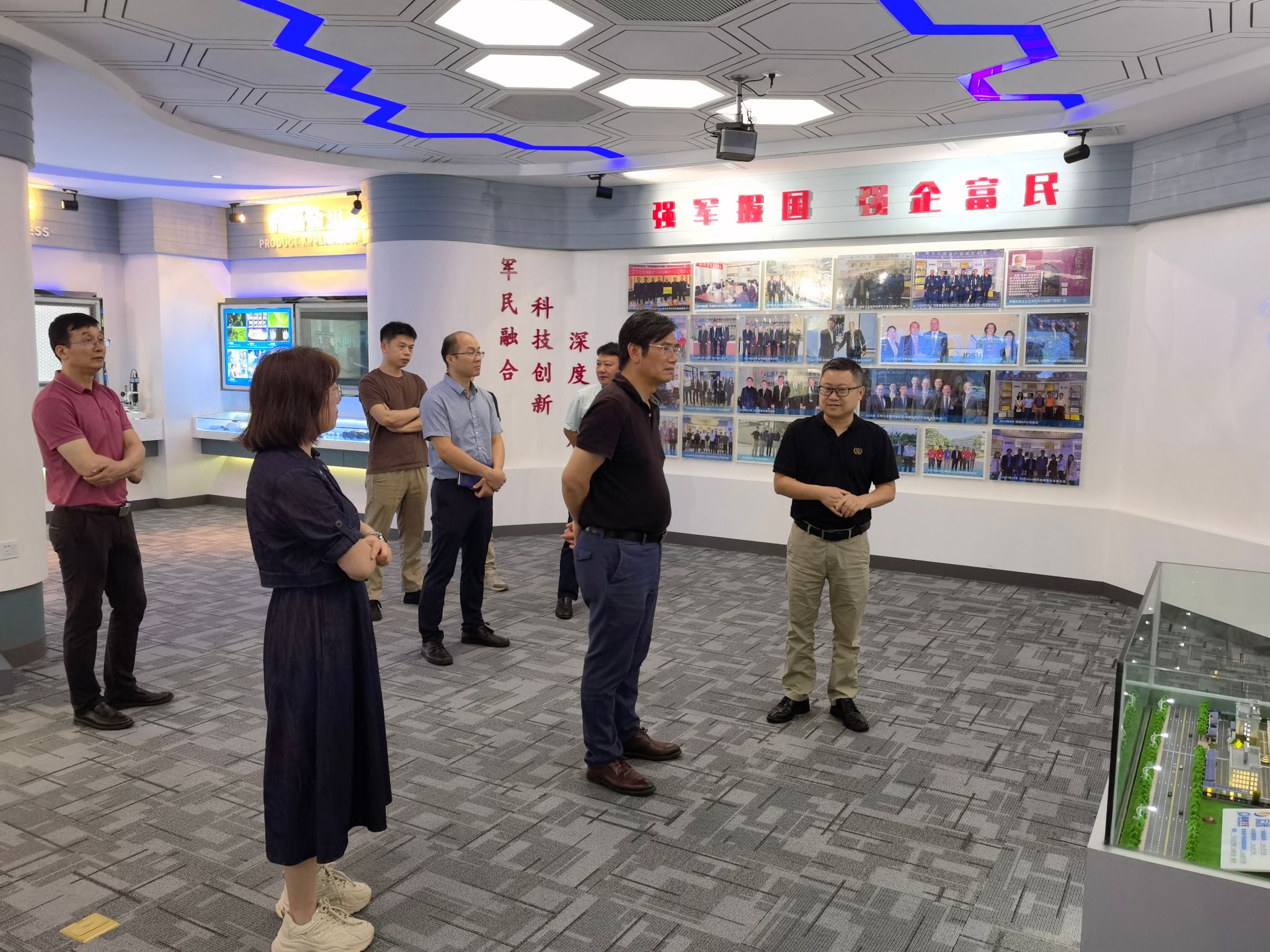 在考察过程中,双方就教学实践基地、产学研合作等多个方面进行了深入探讨。广州南方学院一行详细了解了广州奥鑫通讯设备有限公司的发展历程、业务范围、技术实力以及未来规划等情况。公司负责人介绍了在通讯设备领域的前沿技术和实际应用案例,让调研团队对行业发展有了更直观的认识。杨双华副校长表示,希望通过与企业的合作,为学生提供更多教学实践的机会,培养符合社会需求的专业人才。同时,也期待在产学研方面开展深入合作,实现学校与企业的资源共享、优势互补。经过交流,双方达成了初步的合作意向,未来将在学生实习实践、课程开发、科研项目等方面展开合作。